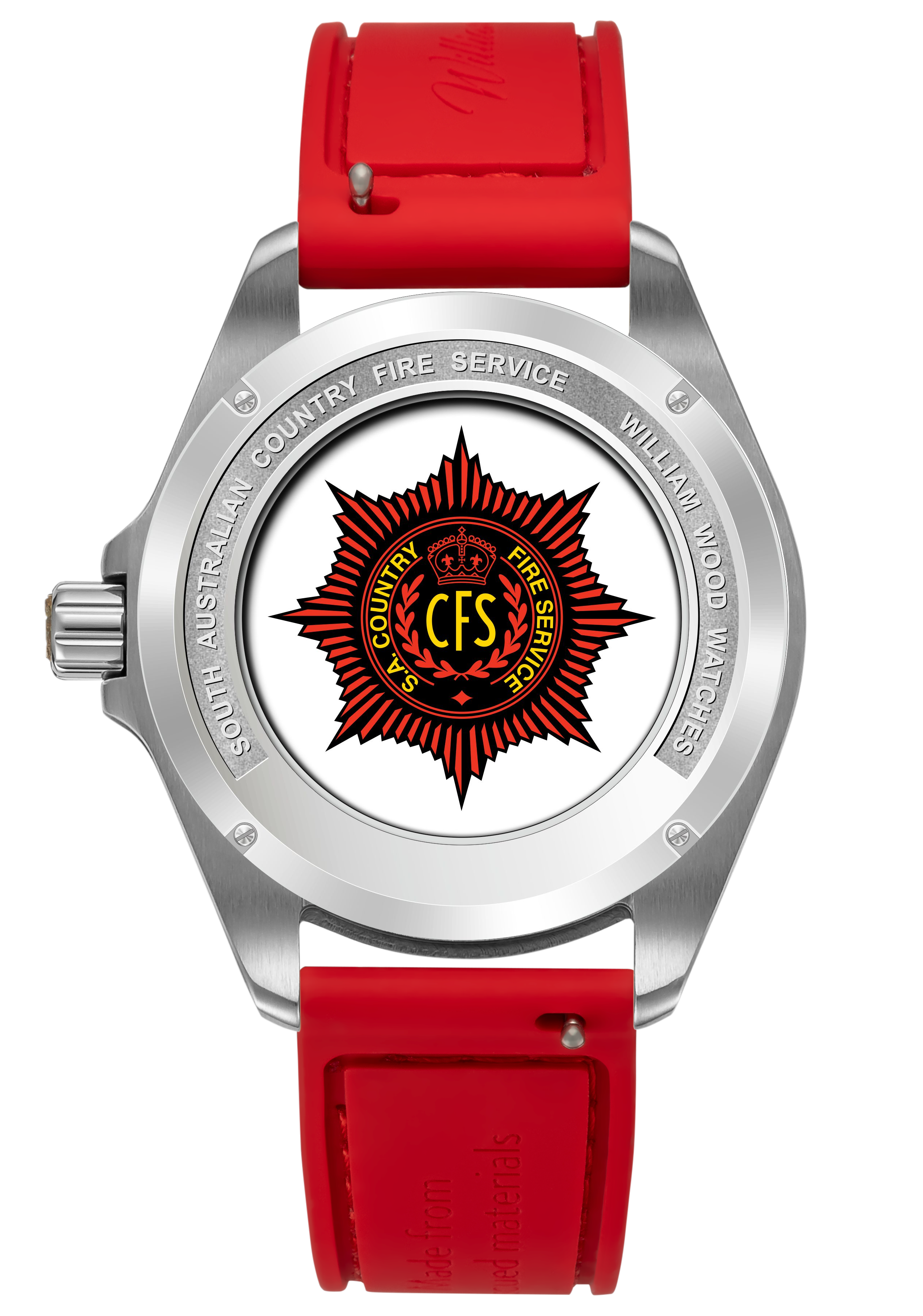 We are honored to have produced Commemorative Watches in partnership with the South Australian Country Fire Service. The watch is exclusively available to all South Australian Country Fire Service serving and retired firefighters and features their CFS star in the back of the watch.